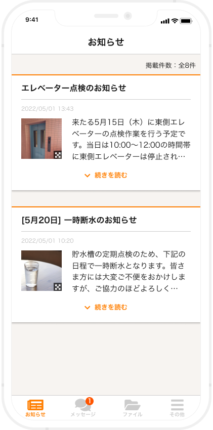 問い合わせや修繕依頼をアプリで一本化。連絡の手間を省き、対応状況の可視化や迅速な情報共有でスムーズな暮らしを支えます。